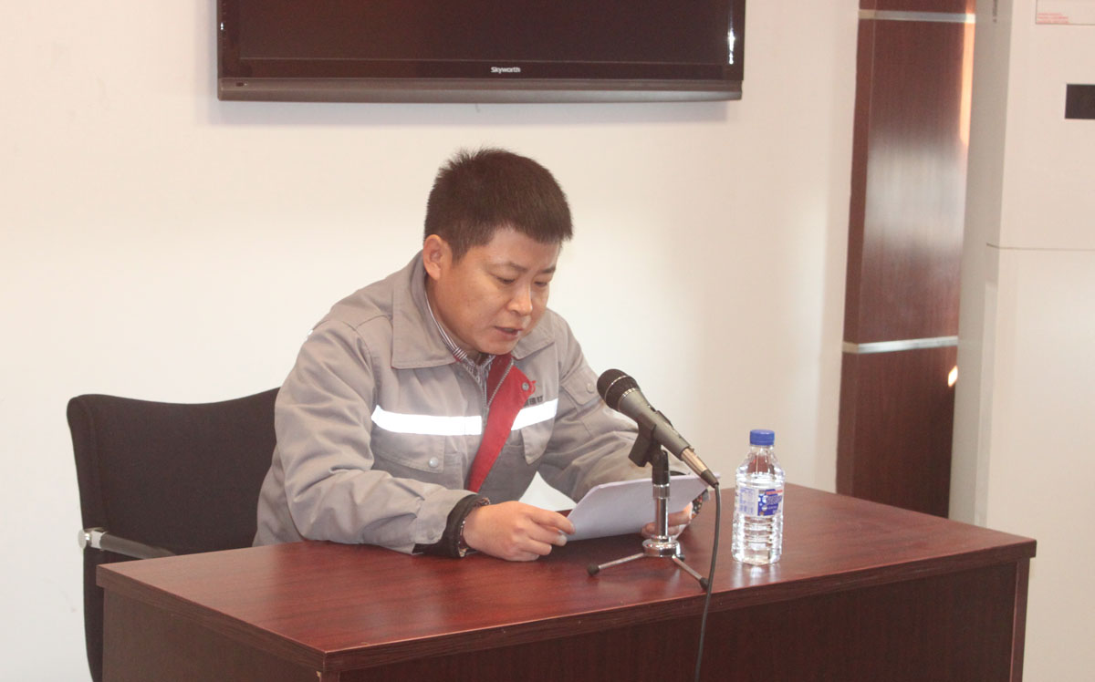 会议首先由公司总经理助理吕鹏飞做2018年四季度经营工作报告,吕总对2018年经营工作进行了全面总结,对2019经营工作形势进行了分析、动员和部署。随后公司副总经理赵文学宣读2019年车间、部门生产经营责任书主要内容,制造车间主任王兴志、生产技术部经理孔详勇、营销部经理郭阳分别对2019年工作进行表态发言。