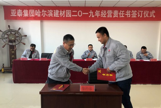 最后,副总经理邢广江进行了总结并提出了要求:2019年是哈建材实施管理精细化管理、实现自我超越的关键年,这次责任书签订以后,各部门(车间)、各级管理人员要积极行动起来,要鼓足干劲,敢于担当,开拓思维,勇于创新,采取超常规的思路、办法和措施,凝心聚力、扎实工作以高昂的气势、高度责任感,勤俭经营、艰苦创业,按照潘总的总体安排和部署,结合责任书的管理目标,立足于本部门、本岗位实际,进一步夯实基础管理,落实好管控措施,有目标、有计划地开展工作,为顺利完成2019年各项工作目标而努力工作。
