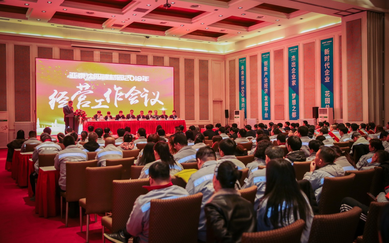 会议首先由总经理贾旭平做《亚泰沈阳建材园二〇一九年经营工作报告》,报告中回顾了自亚泰沈阳建材园整合以来所取得的成绩,总结了2018年经营工作中存在的不足;客观分析了当前面临的形式,并对2019年的工作做出了部署。他指出:针对2018年工作中存在的问题,各部门和车间要认真反思,找出根本性解决办法;2019年要明确经营思路,认清市场形势,提升管理水平,打出产品品牌,随着市场的政策变化逐渐摸索,找出企业新发展的对策和思路,保证全面完成2019年各项经营目标。