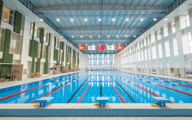 NO.1/省内首家国际标准温泉游泳馆,游泳馆设有长50米、宽25米的8泳道国际标准游泳池。