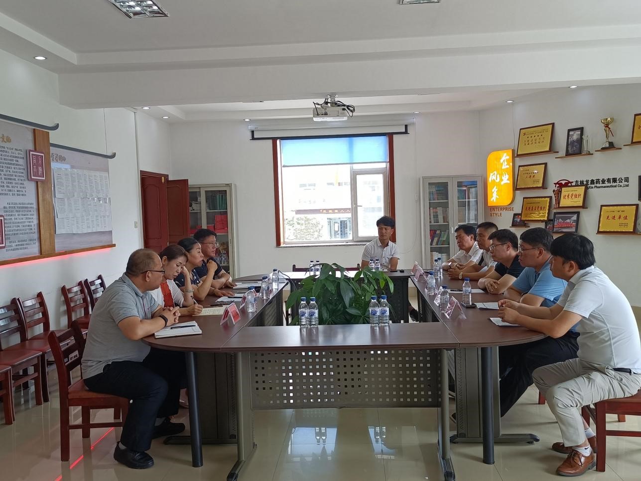 2021年8月5日,和龙市委副书记、代市长朴哲万等一行莅临亚泰龙鑫药业调研指导工作,企业总经理徐健携全体班子成员接待。