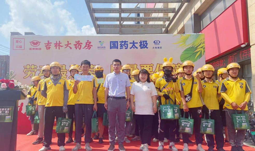 在炎热的天气中,大家在送餐的同时务必注意健康和降温的防护措施。活动现场,亚泰集团吉林大药房与国药太极集团共同向在场的外卖骑手代表赠送了价值百元的夏日“送清凉”慰问礼包,礼包内包含藿香正气口服液等物品,骑手们对此表示真诚的感谢,并表示将在自己的岗位上做得更好,为社会做出更多贡献。