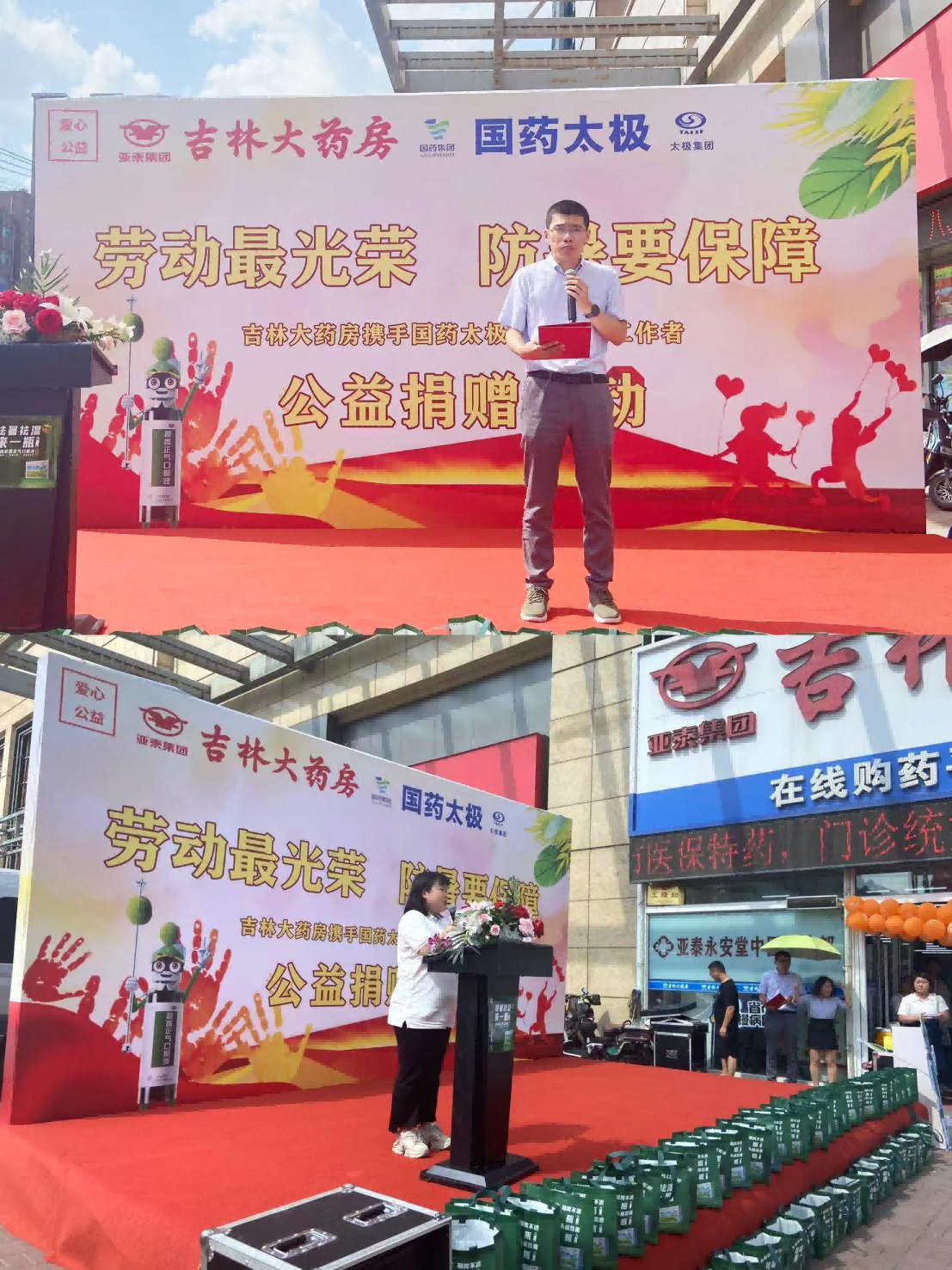 亚泰集团吉林大药房与国药太极集团在红旗街连锁店合作举办了一场名为“防暑公益行”的活动。该活动以“防暑保安康”为核心理念,特别关注夏季露天劳动从业人员,旨在为外卖骑手送去清凉并表达社会的关怀。