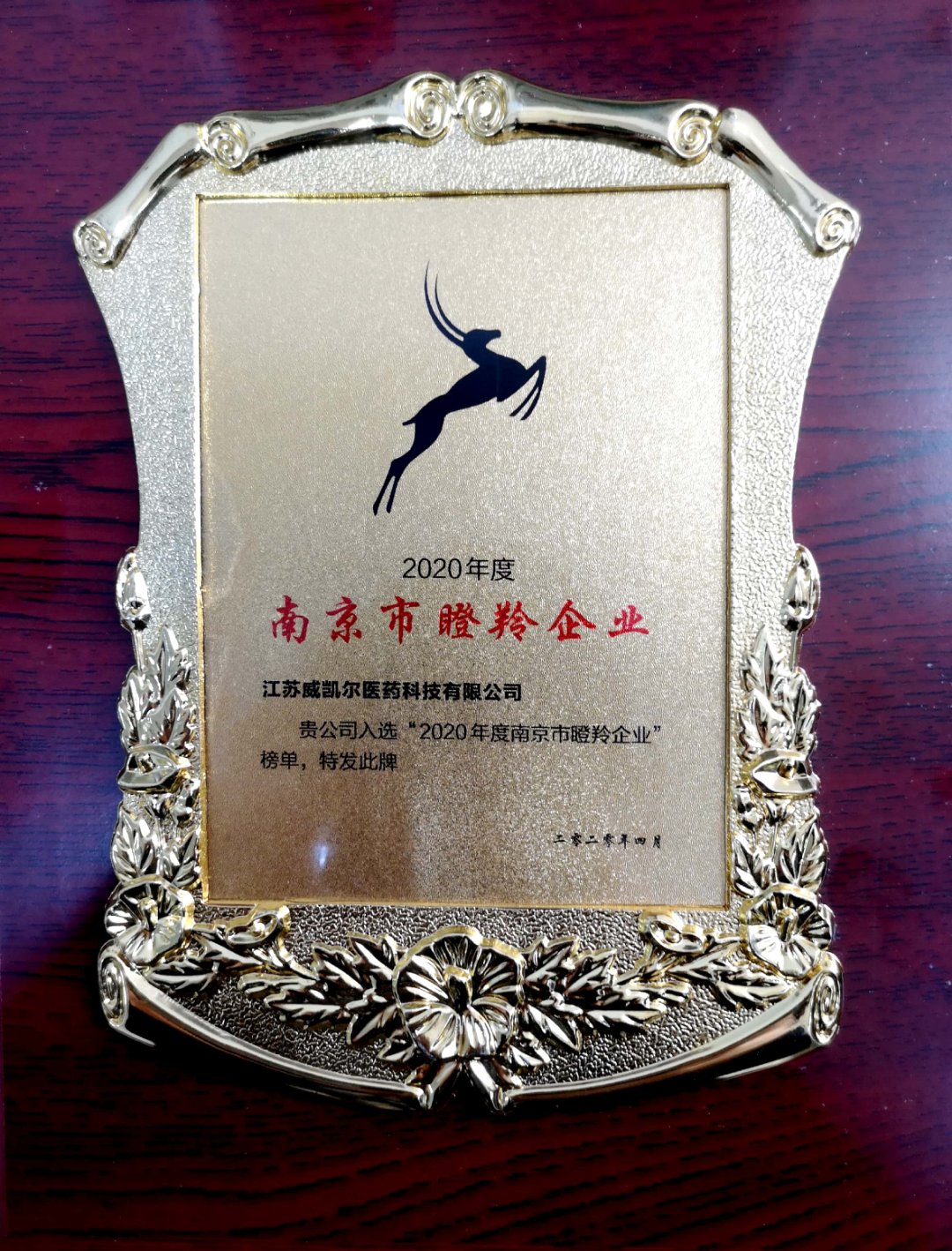 4月29日下午两点,2020年南京市高成长性企业暨独角兽、瞪羚企业发布会在江北新区长江之舟主会场召开,江苏威凯尔医药凭借出众的科研实力、创新能力以及发展潜力继2019年入选苏南国家自主创新示范区瞪羚企业后再次入选南京市瞪羚企业,南京市委副书记、市长韩立明亲自为新增瞪羚企业授牌。