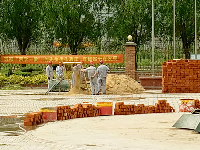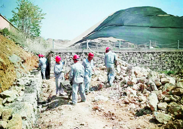 镜头一:因年久失修和雨水冲刷,三线熟料库西侧放料点护坡部分坍塌,存在安全隐患,影响厂内交通,需要维护,平时的岗位工人变身有模有样的瓦匠。