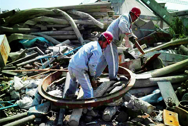 镜头三:检修结束后,废旧物资较多,按要求对废铁堆场进行整理分类,方便后期处理。