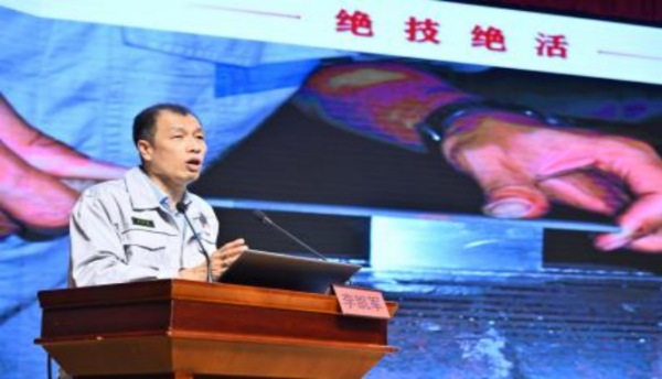 鹿新弟用生动的语言,讲述了自己用三十余载光阴打磨发动机的故事。他通过勇于创新和不懈努力攻克了柴油机调试的世界性技术难题,使我国率先拥有了多项自主知识产权的柴油机调试技术,填补了国内外空白。现场员工为其拼搏创新的工匠精神深深动容。
