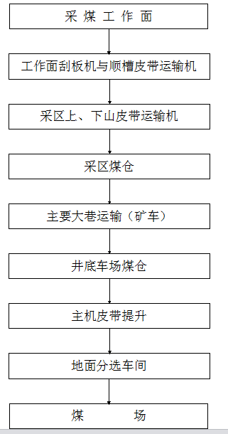 2、煤炭经由工作面运输巷和采区上山内的皮带运输机运至采区煤仓。