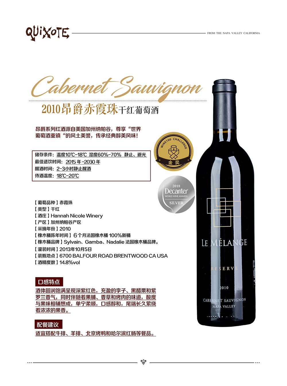 2010昂爵赤霞珠干红葡萄酒珍藏版
