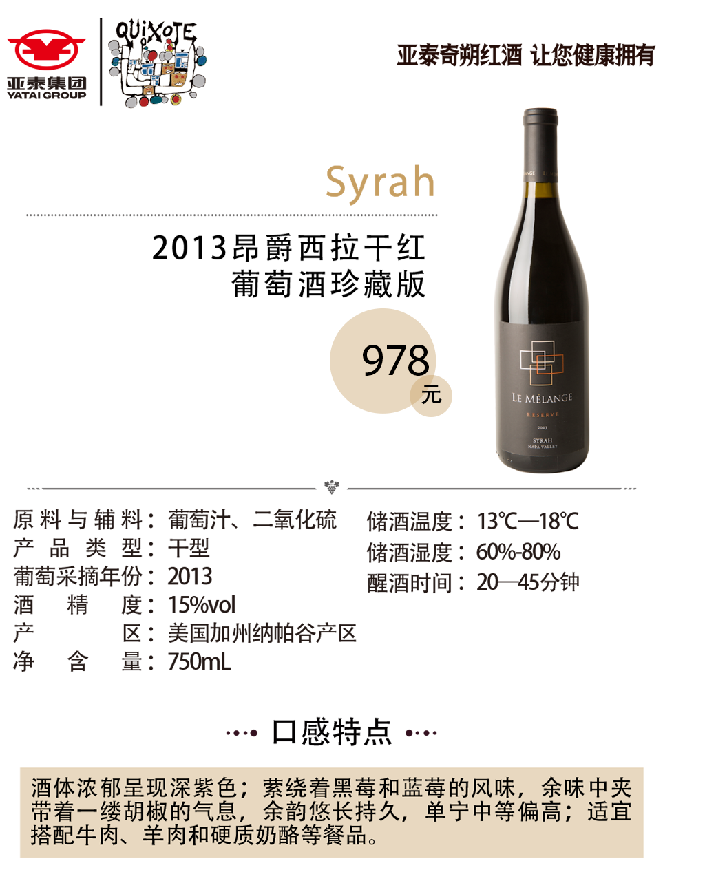 2013昂爵西拉干红葡萄酒珍藏版