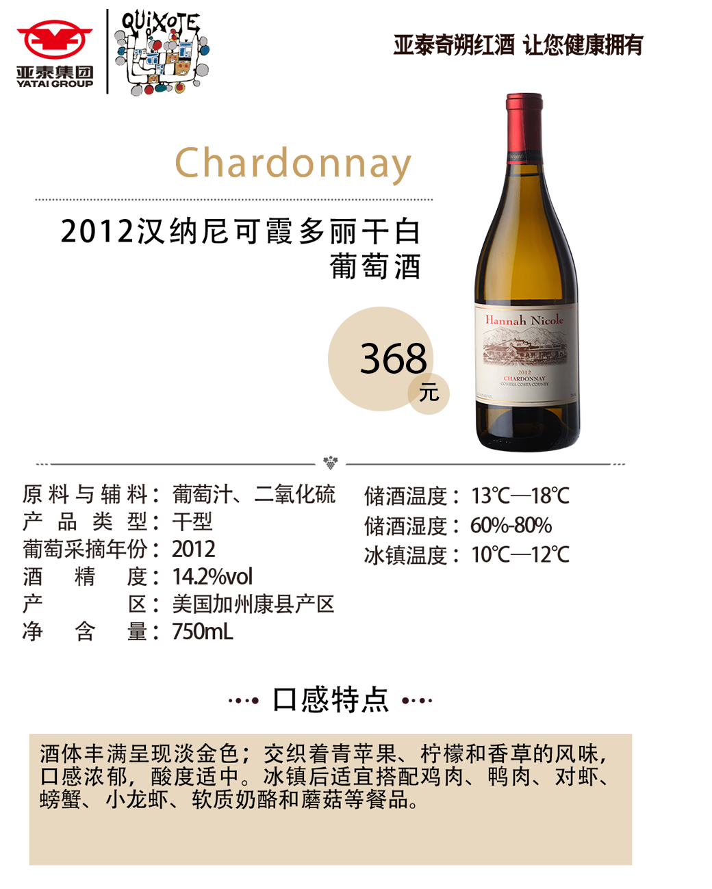 2012汉纳尼可霞多丽干白葡萄酒