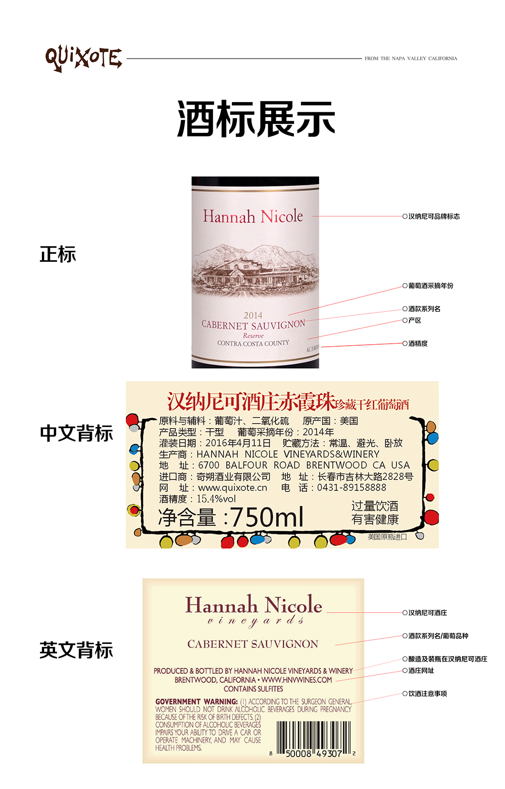 2014汉纳尼可赤霞珠干红葡萄酒珍藏版