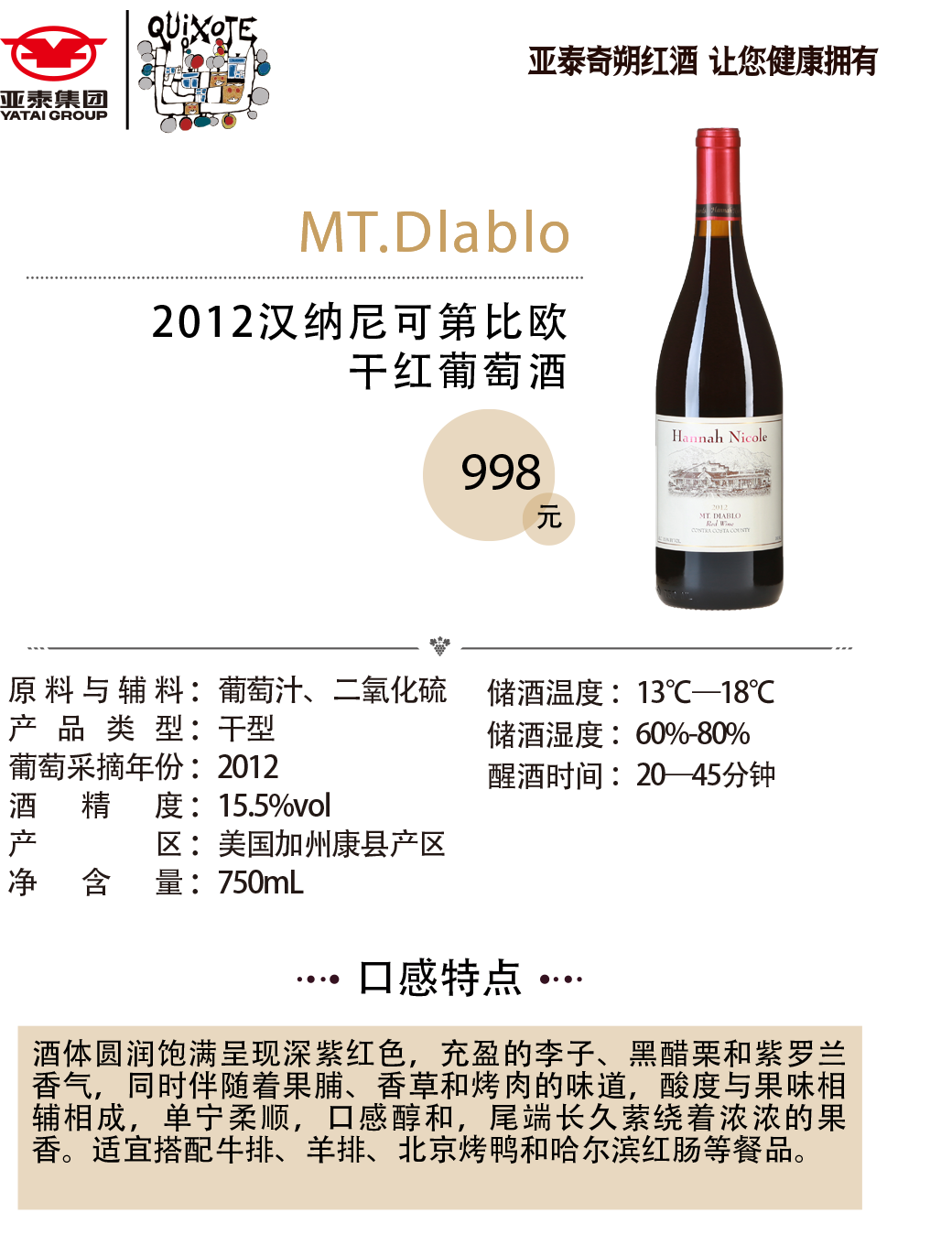 2012汉纳尼可第比欧干红葡萄酒