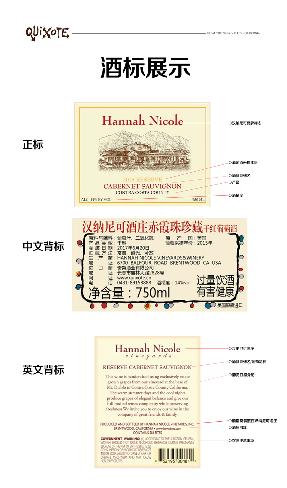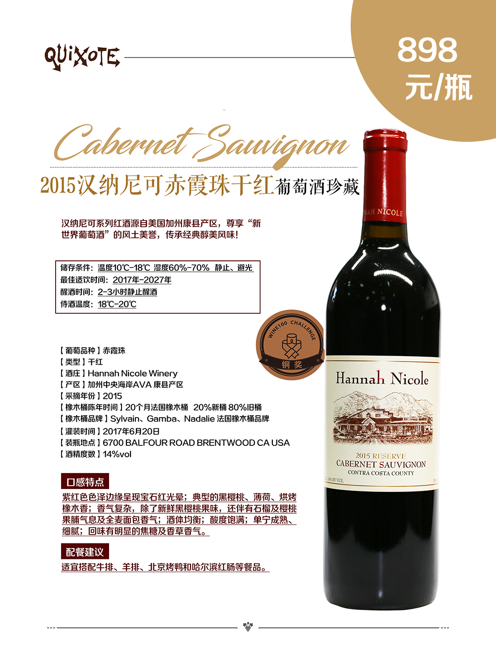 2015汉纳尼可赤霞珠珍藏干红葡萄酒
