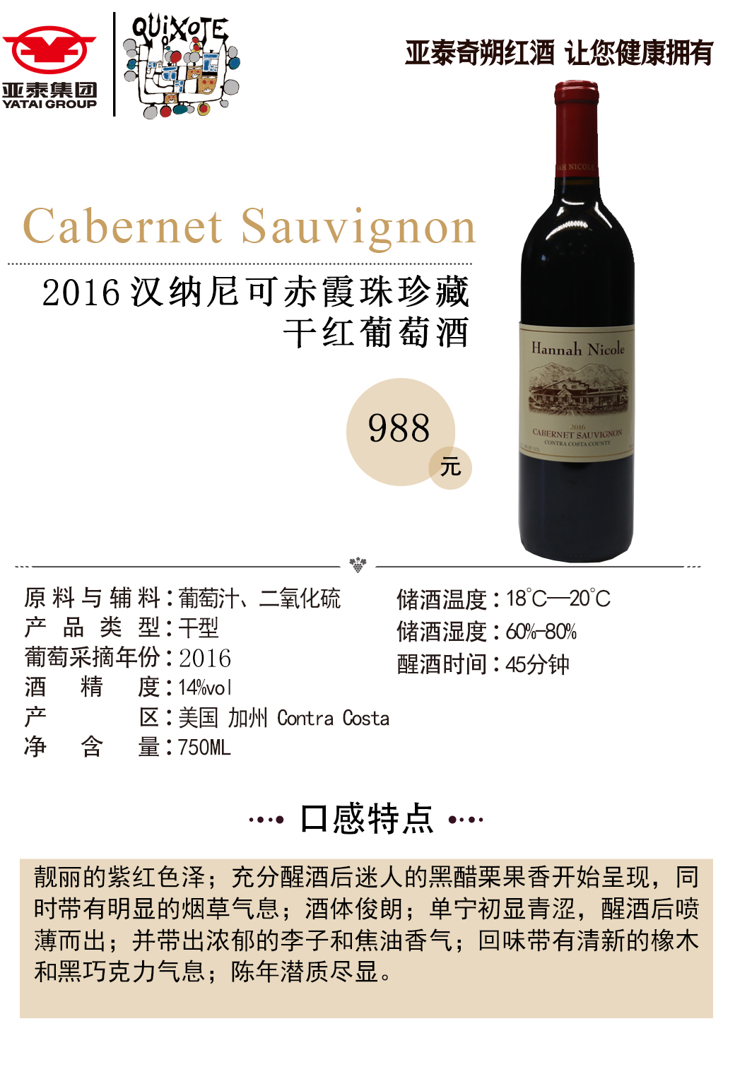 2016汉纳尼可赤霞珠珍藏干红葡萄酒