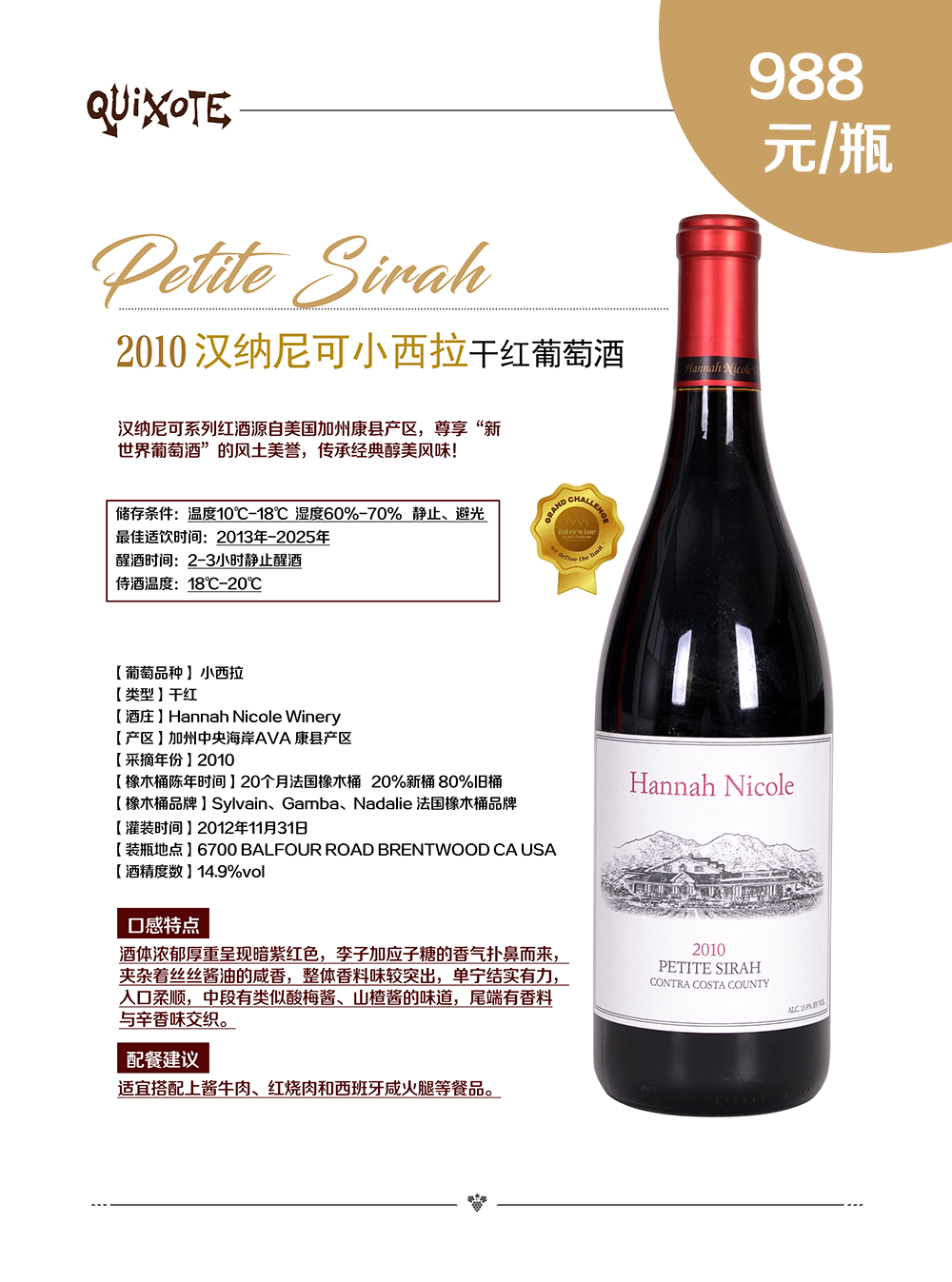 2010汉纳尼可小西拉干红葡萄酒