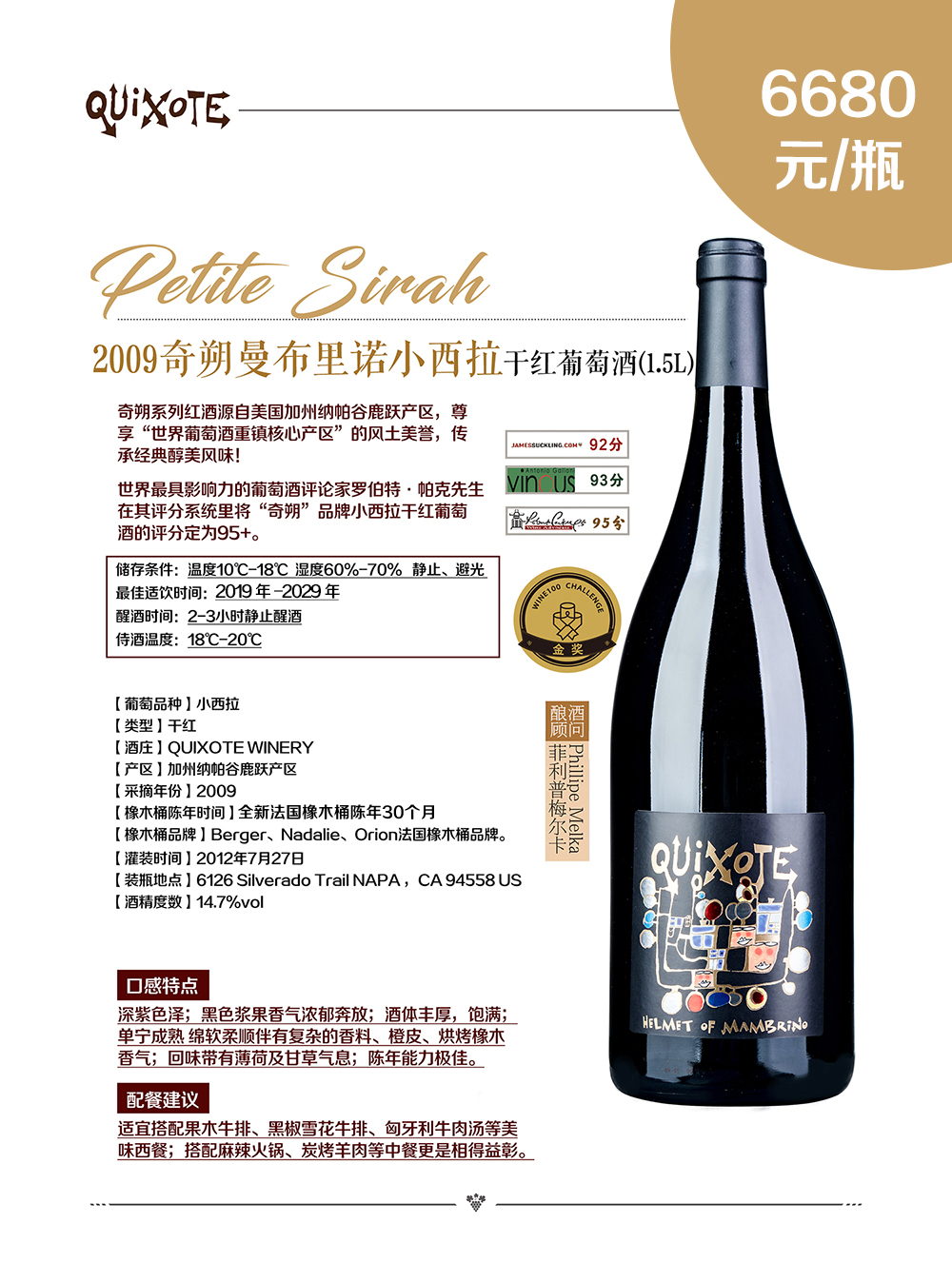 2009奇朔曼布里诺小西拉干红葡萄酒(1.5L)