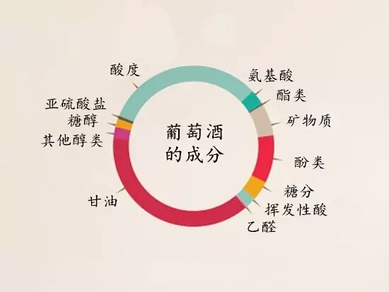 酒精是葡萄酒的一个重要组成部分,它是葡萄酒中卡路里的主要来源。此外,葡萄酒还含有一些更为有趣的化学成分: