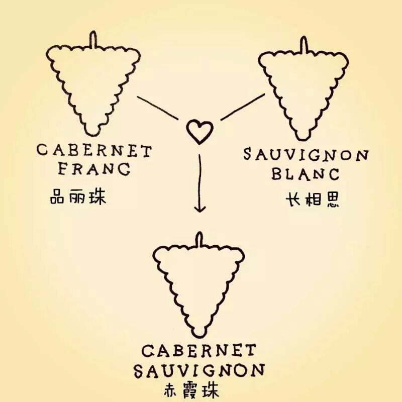 根据《牛津葡萄酒辞典》,大约在17世纪时期,法国西南部的人们希望培育出一种简单易种但是又带有特殊风味的葡萄品种,于是就尝试用品丽珠(Cabernet Franc)和长相思(Sauvignon Blanc)进行了种内杂交(Crossing),并将这个新品种命名为“Cabernet Sauvignon(赤霞珠)”。