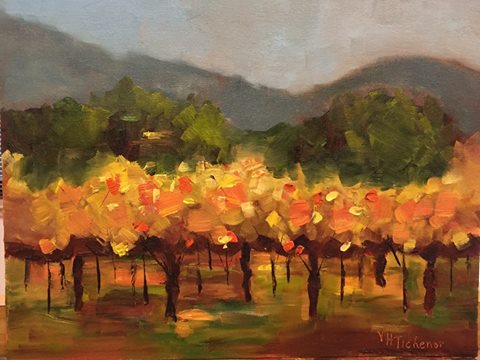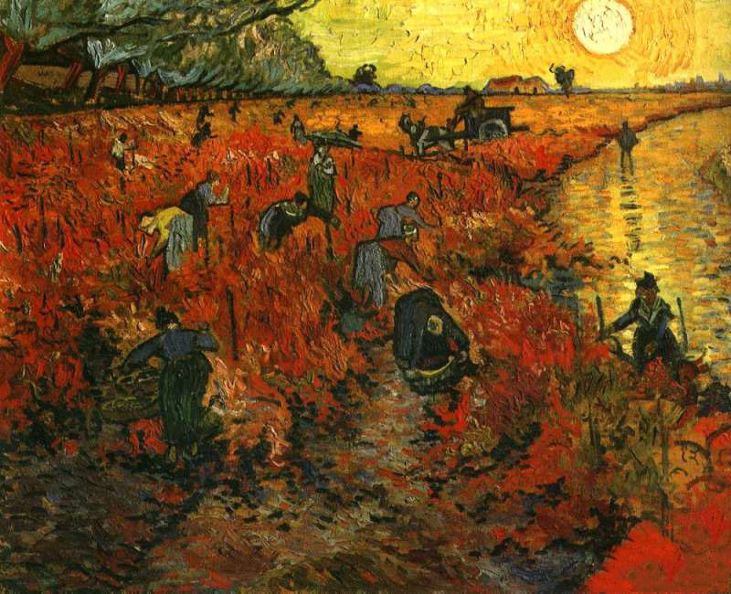夕阳西下,落日的余晖中,金色的葡萄园煜煜生辉,满是丰收的喜悦与满足。