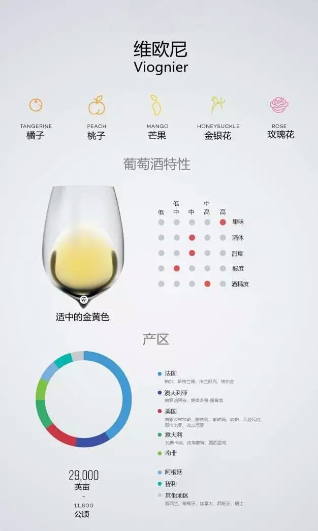 维欧尼的酒精浓度在13.5%至15%之间,虽然变化范围不算大,但在饮入后的感官差异却很明显。如果你喜欢清淡纤瘦的葡萄酒,就选择酒精度在14%以下的维欧尼。如果你喜欢浓郁丰富,果味奔放的葡萄酒,那就选择酒精度更高的维欧尼。