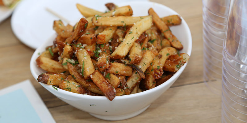 肉汁乳酪薯条是加拿大魁北克人所发明的,淳朴而美味。酥脆的薯条上面铺上一层新鲜的软奶酪,把滚烫的肉汁浇在上面,口感既脆又软绵,令人上瘾。维欧尼干白葡萄酒能突出肉汁中的泥土风味,而其酸度也能平衡奶酪的粘稠感。