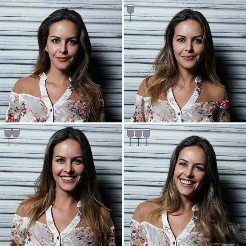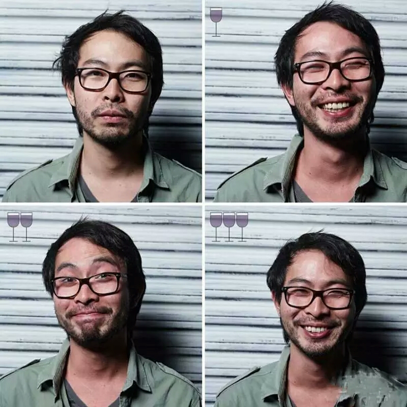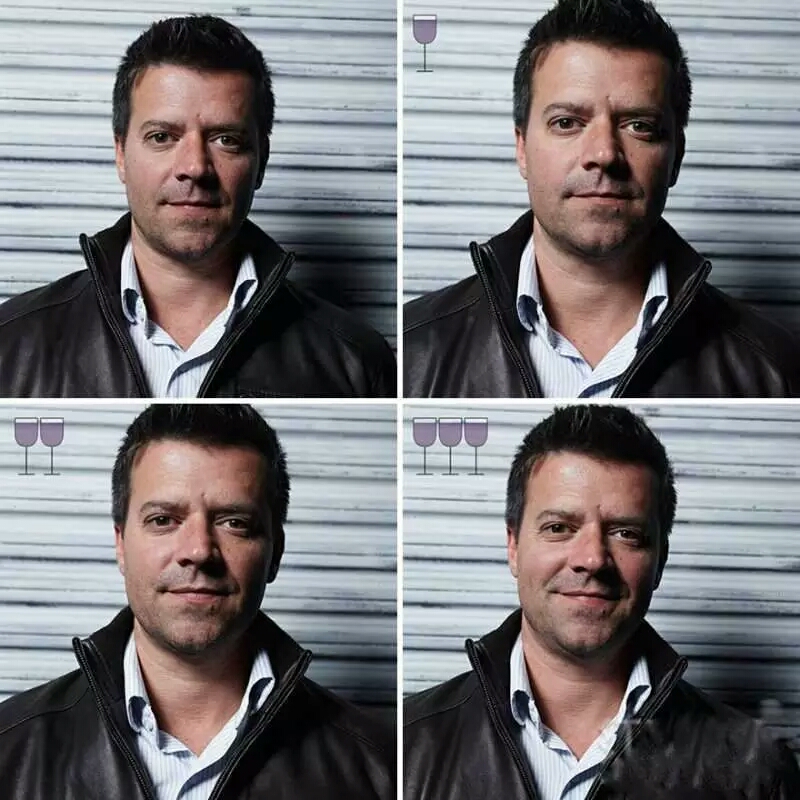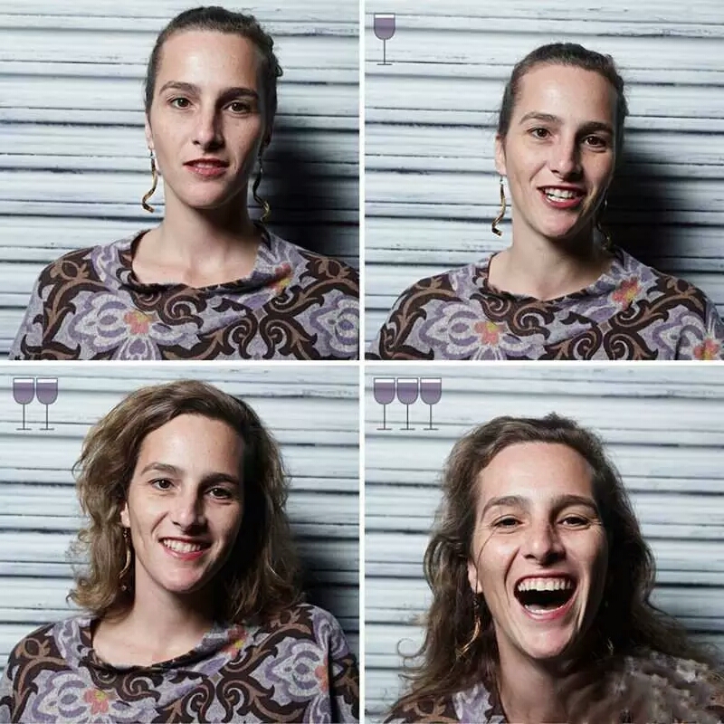 巴西摄影师马科斯·阿尔贝蒂(Marcos Alberti)找来多位朋友作模特,分别拍摄了他们在喝掉一杯、两杯、三杯葡萄酒后的面部表情。下面让我们来看看葡萄酒是如何愉悦他们的!