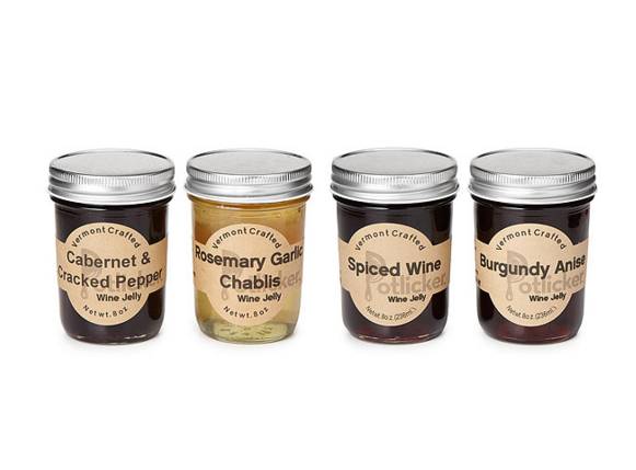 这是一对美国的夫妇的发明,他们将葡萄酒倒入锅中,用文火慢炖,得到非常浓缩的“葡萄酒浆”,再加入香料调味,手工制成了这一款葡萄酒冻。产品一共分4款:赤霞珠&黑胡椒、迷迭蒜香夏布利、勃艮第大茴香以及香料酒,每一款适合搭配不同类型的奶酪、土豆、烤肉、面包等美食,也可以用来调配鸡尾酒。食指大动有没有?