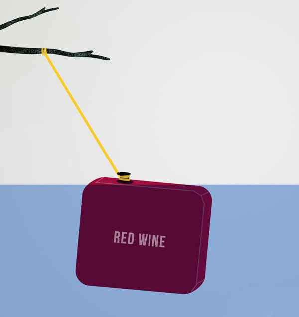 如果想要喝冰一点的葡萄酒,你可以将葡萄酒袋浸在河水中,不过要注意瓶口不要接触到河水。