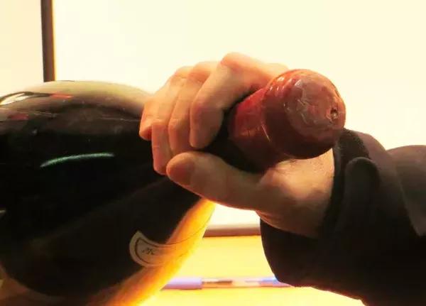 首先需要判断蜡体的软硬程度。如果蜡体较硬、较脆,那么首先要剥开包裹着橡木塞和瓶口的蜡体,并将瓶口擦拭干净,以免破碎的蜡体掉入葡萄酒中,污染葡萄酒。如果蜡体太脆弱,还可用烛火、热水甚至手掌稍微加热后,再把蜡体剥开。在此之后用开瓶器取出橡木塞即可。