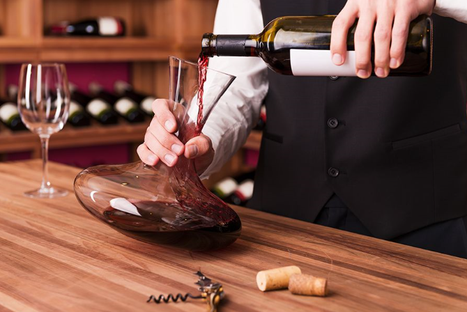 葡萄酒中的天然沉淀物不会对酒品质产生影响,却会影响品酒者的口感。因而,在品酒之前,侍酒师需要通过醒酒来将酒液中的沉淀物去除,以减少沉淀物对葡萄酒颜色观察产生的干扰。在去除沉淀物之前,需要先将酒瓶直立静放数小时至1天时间,这是为了让沉淀物安静地聚集在瓶底处;在向醒酒器中倾倒时,也要注意轻柔地将瓶中的酒液倒入醒酒器,尽量不要过于晃动酒瓶;以上都是为了将沉淀物尽量地留在瓶底,方便与酒液分离。