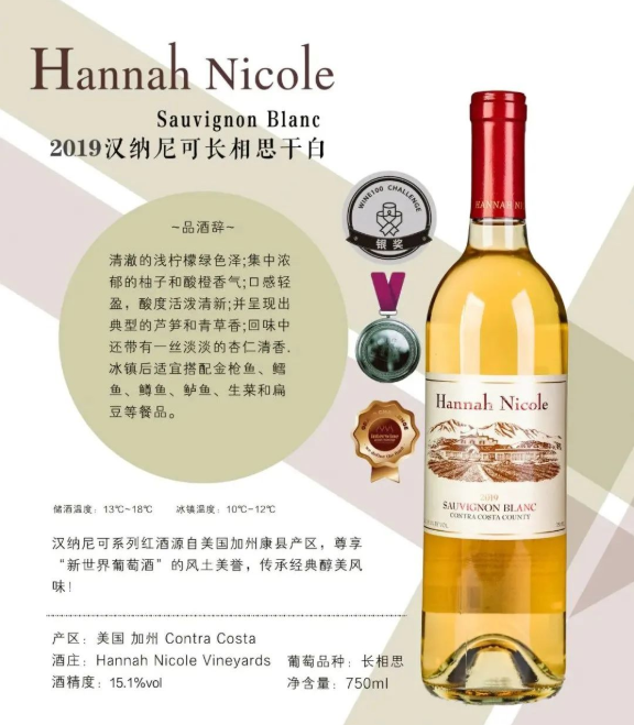 位于加州康特拉科斯塔县的汉纳尼可酒庄出产的长相思干白,口感轻盈,酸度活泼,颇受人们喜爱。