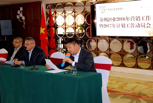 奇朔酒业副总经理刘方通报2016年度一至三季度经营指标完成情况。