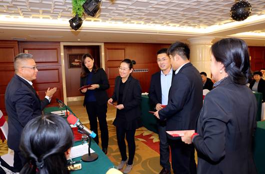 奇朔酒业总理经王传玉向各销区颁发2016年第三季度销售激励。