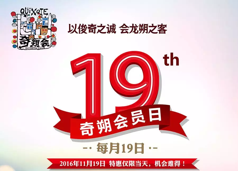 【每月19日】2016年11月19日,奇朔会员日,特惠仅限当天,机会难得!