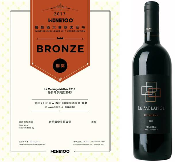 铜奖酒款:2013昂爵马尔贝克干红葡萄酒珍藏版