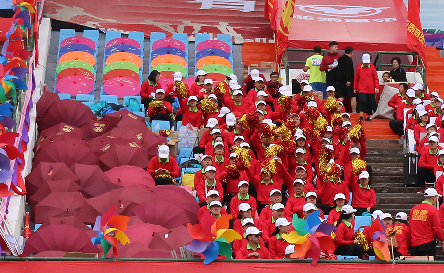 奇朔酒业观众席与亚泰商贸兄弟企业一同做好“文明观赛、热情助场”