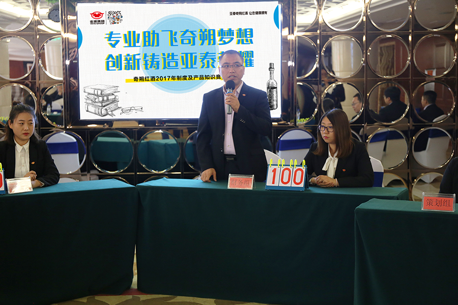 2017年9月28日下午一点半“专业助飞奇朔梦想,创新铸造亚泰荣耀”——奇朔酒业2017年度企业制度及产品知识竞赛在奇朔红酒坊长春旗舰店成功举办。奇朔酒业总经理王传玉,奇朔酒业副总经理李显堂,奇朔酒业副总经理、奇朔红酒坊总经理刘方,奇朔酒业总经理助理、奇朔酒业工会主席刘蕊,,亚泰商贸产业海外投资部经理刘仲尧担当本次竞赛评审。本次竞赛是由奇朔酒业工会组织,在企业全体员工积极响应下的一次集“职业素养评判与专业知识考核”相结合的创新型岗位练兵活动。