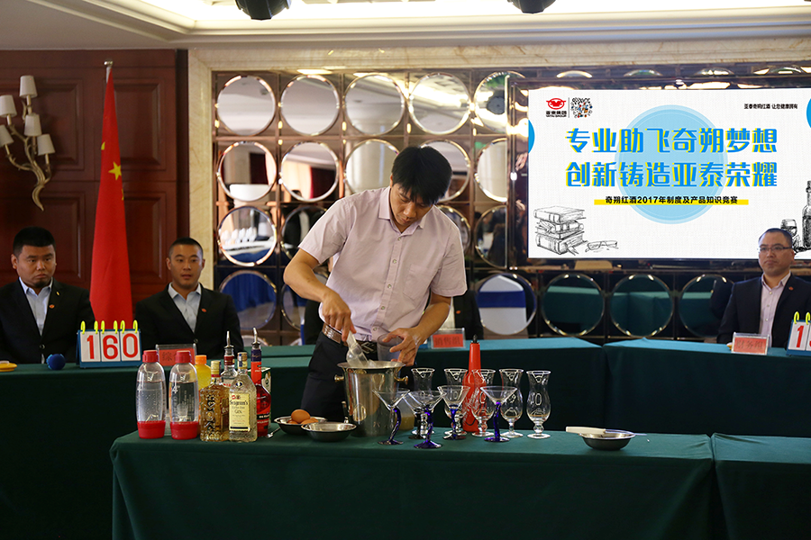 企业制度竞赛结束后,奇朔红酒坊的西点大师王宏刚为到场领导及同事带来了精彩的蛋糕裱花表演“龙凤呈祥”寓意吉祥,象征着亚泰奇朔红酒事业“酒、餐并举”的蓬勃发展;奇朔红酒坊的优秀员工杨玉鸣现场带来了精彩玄妙的调酒表演。