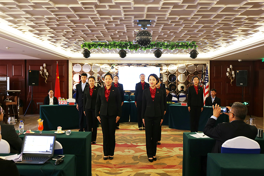产品知识竞赛结束后,奇朔红酒坊实习员工为到场领导及同事带来了“青春洋溢、标准规范”的礼仪操表演。