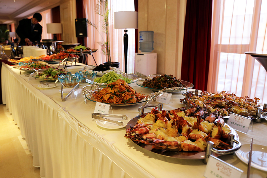 冷菜:时蔬沙拉台、酸黄瓜、青瓜牛展、麻香耳丝、特色烧鸡