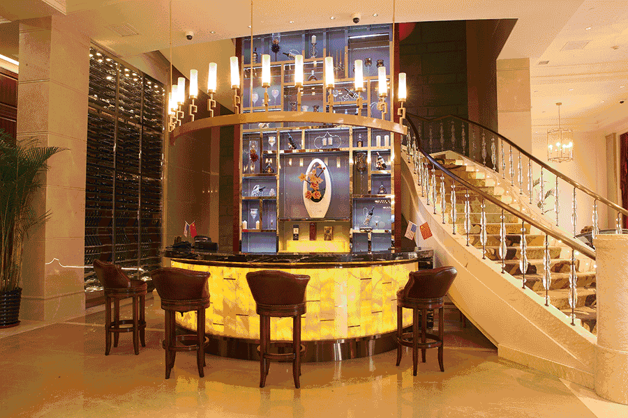 尊享顶级私属空间,大玻璃幕窗开阔通透,透明式红酒酒柜深邃优雅,由国际一流设计师打造的美式风格,美国加州红酒文化元素的运用,散落其间的人文陈设、装饰作品及播放的音乐,无不悠远地讲述奇朔红酒坊中西方文化的完美交融。高品位的环境设施,高品质的服务,现代化的管理理念,使酒坊体现贵族气息及王者风范。