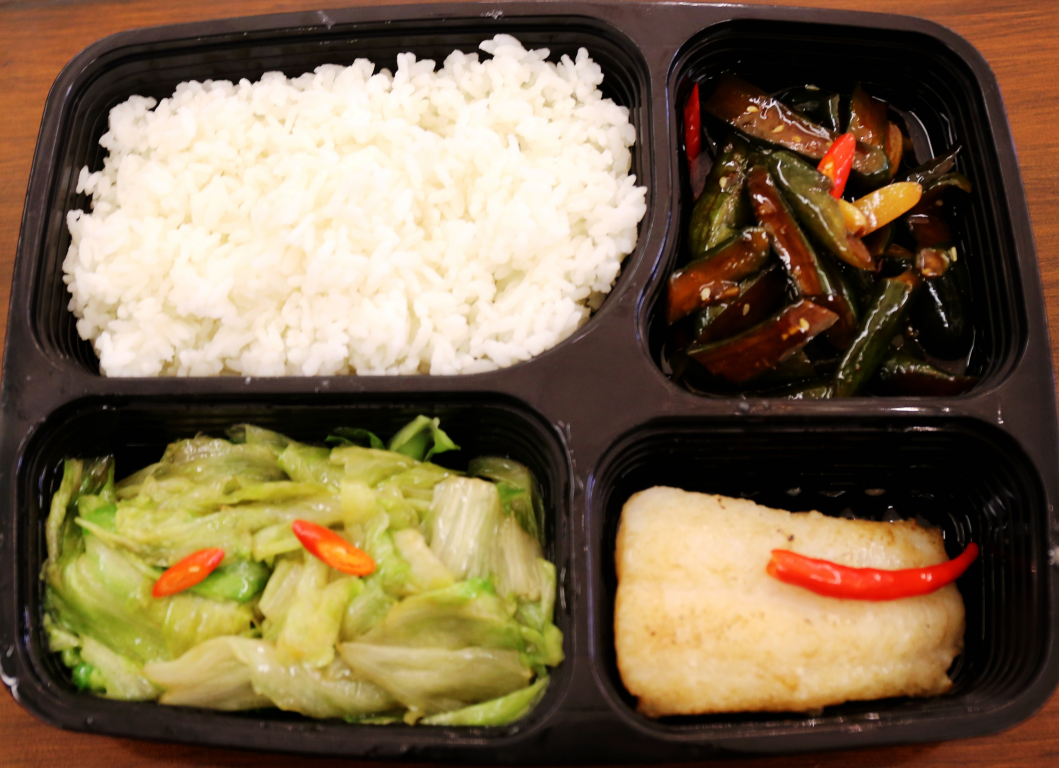 (香煎龙利鱼+橄榄油清炒西生菜+开胃小菜+米饭)38元/例