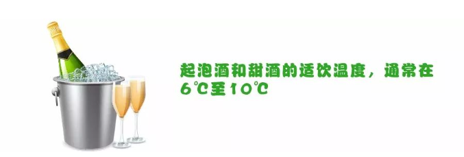 低温能够帮助起泡酒维持较长时间的细腻气泡,提供清新口感;甜型葡萄酒在低温度下饮用,会减少甜腻的口感,突出花香。