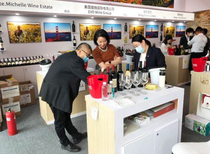 2021年度全国糖酒会酒店展第一天,成都万达瑞华酒店发现加州葡萄酒馆展厅迎接着来自全球的葡萄酒爱好者,奇朔酒业高级品酒师团队在41-CWI-A2展位恭迎酒友品鉴交流。