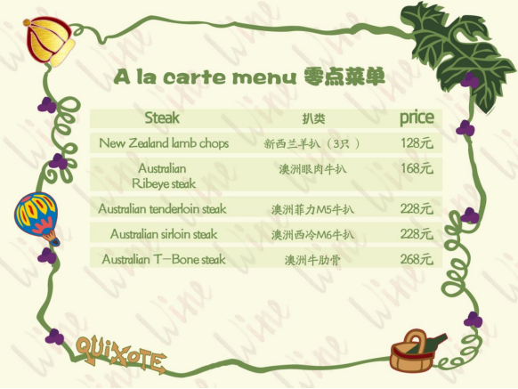 以下为部分零点餐牌: