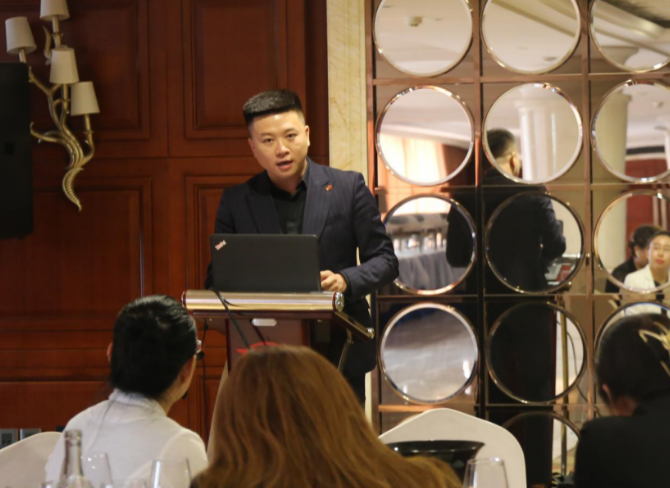 WSET三级认证品酒师、奇朔酒业副总李显堂现场分享了美国加州及纳帕产区风土知识与奇朔红酒源头酒庄文化,娓娓道来中展开奇朔酒庄有机种植、人工精护的27英亩庄园的醇美画卷。