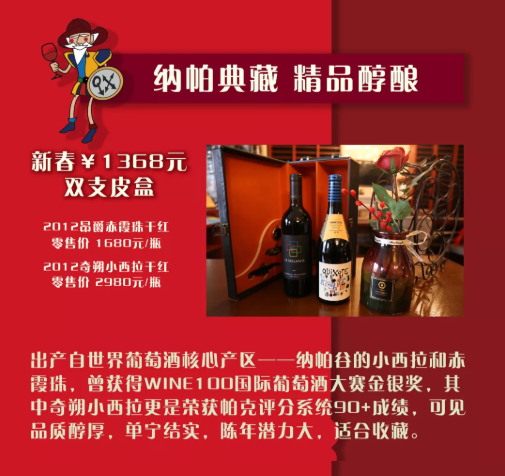 ★奇朔酒庄出产的小西拉干红,是闻名世界的纳帕名庄酒,每年产量极低,精心酿制典藏醇酿,出口至中国的佳酿更是稀少而珍贵,目前仅供奇朔会员选购。