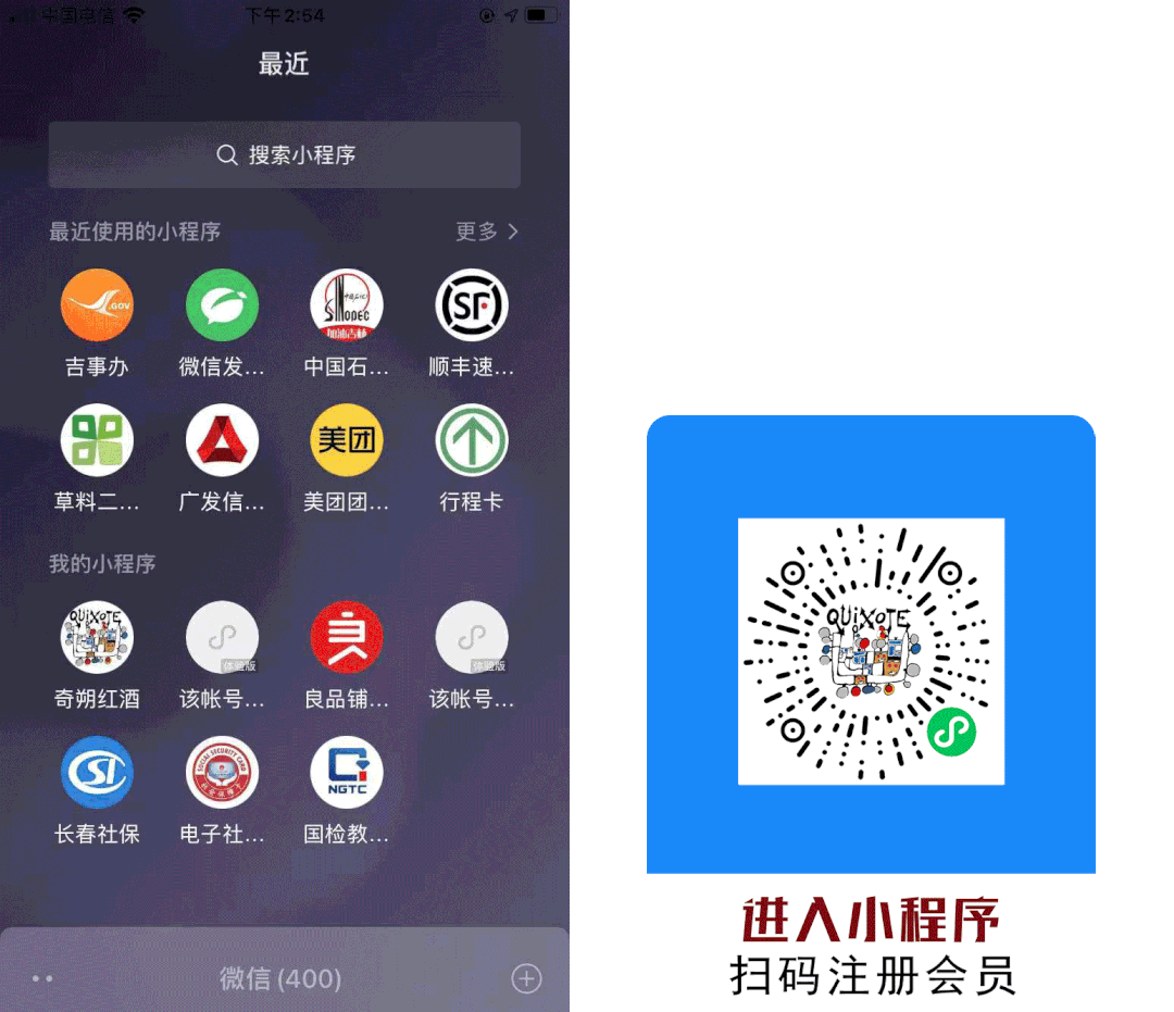 进入“奇朔红酒会员小程序”