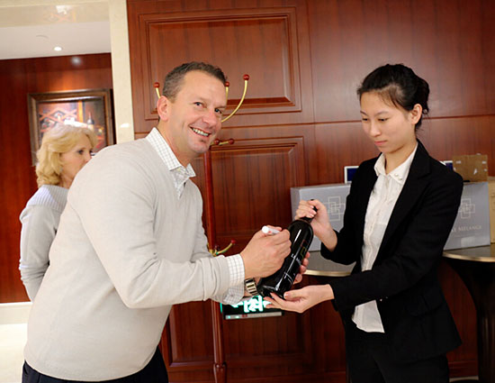 奇朔酒庄的生产经理及调酒师戴蒙先生的专业品鉴讲解将活动推向高潮,通过对美国红酒文化、纳帕产区、专业红酒品鉴知识的讲解,向客户展示了奇朔红酒的专业品质,引导客户更深刻地认知了奇朔品牌。